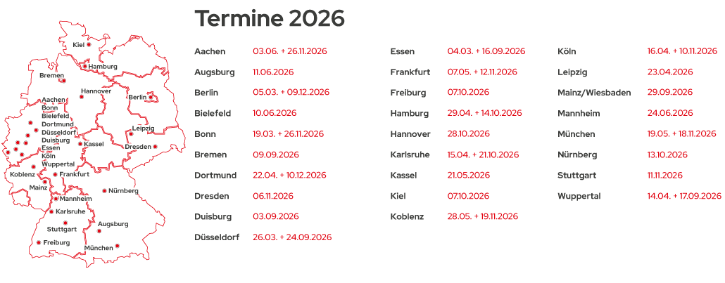 Anmeldefrist? Gibt es bei uns nicht, Sie können sich bis zum letzten Tag vor der Messe anmelden. Wenn Sie sich aber bis 3 Wochen vor der Messe anmelden, profitieren Sie von allen Marketingmaßnahmen.
