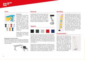 Ein attraktiver Messestand ist eine Grundzutat für Ihren erfolgreichen Messeauftritt. Zur perfekten Vorbereitung zählen Budgetierung, die Wahl des Mobiliars, des Standtyps, aber auch Aktionen am Messestand, Give-Aways und die Wahl des Standpersonals. Vollgepackt mit wertvollen Tipps und anschaulichen Beispielen hilft Ihnen der kostenlose Jobmesse-Guide „Der perfekte Messestand“ auf knackigen 20 Seiten dabei, Ihren Messestand in einen wahren Bewerbermagneten zu verwandeln. Wie schon der „Große Jobmesse-Guide“ eignet sich auch dieser Ratgeber besonders gut für Neueinsteiger, aber auch erfahrene Aussteller.
